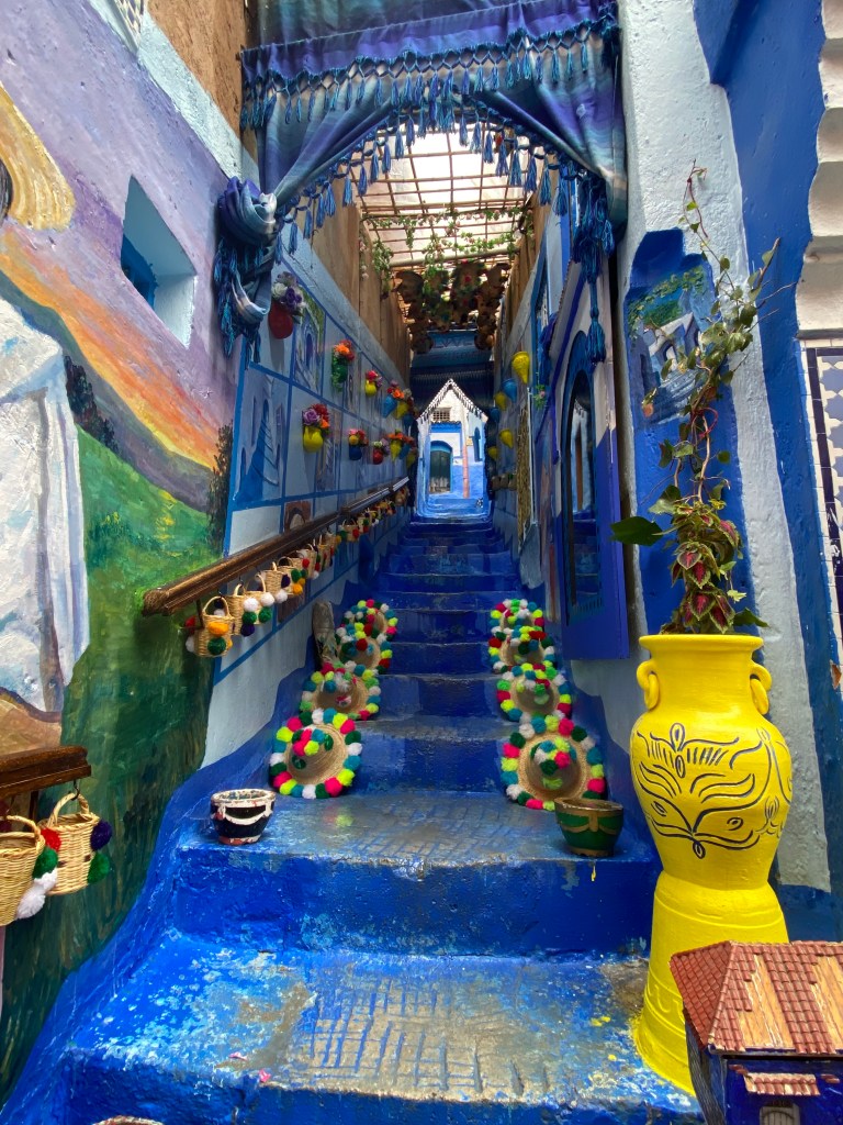 My journey from Fez to Chefchaouen started early the next morning. It took me 4 hours by taxi to reach the blue mountain town where all the houses are painted blue. After spending a couple of hours there, I continued my journey to Tangier, a coastal city where the Atlantic meets the Mediterranean. Tangier is more modern and attracts many European visitors. The food there was different and tastier than in the rest of Morocco, with a wider variety for breakfast. Finally, I flew from Tangier airport to London Gatwick, concluding my one-week journey through Morocco.